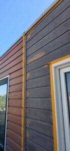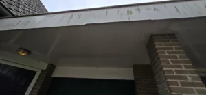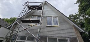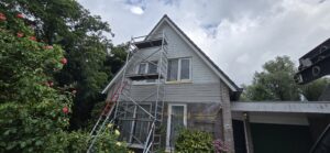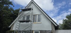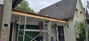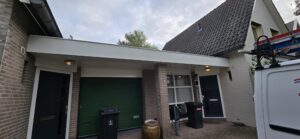 Het houtwerk van de carport plafond schilderen rabatdelen buiten schilderen.