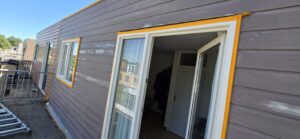 Kozijnen in de Kleur 9001 Ral Hoogglans Veveo Rain Guard.