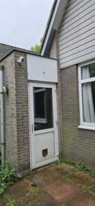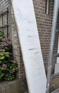 De rabbatdelen schilderen, windveer en boven de deur het paneel ( bovenlicht ) schilderen.