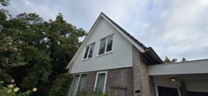 De panelen en kozijnen in de kleur 9010 Zijdeglans Veveo Rain Guard.