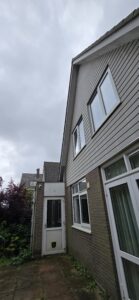 De rabbatdelen schilderen, windveer en boven de deur het paneel ( bovenlicht ) schilderen.